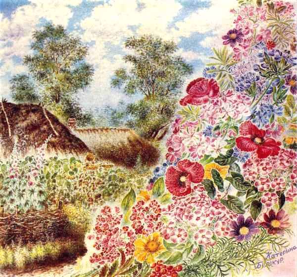 Ей позволили рисовать каждый день, только когда она решила покончить с жизнью. Отношение же к ее «малеванью» изменилось только тогда, когда за ее работами стали гоняться столичные искусствоведы и галереи, а увидевший их Пабло Пикассо сказал «Если бы у нас была такая художница о ней говорил бы весь мир». Добавляло ей тяжести то, что не было близкой души деревенские нравы были тяжелы и грубы, и женская доля там рисовалась совсем не в разговорах и написании картин. Вот такая вот Золушка в родном доме, только Золушка мечтала о понятном, женском счастье: красивое платье, балы и принц а Катерина Билокур о Странном: писать картины. Этого никто в деревне не понимал, и в общем они были не так уж виноваты из забитого крестьянского быта они шагнули в жестокий железный век советской власти с ее голодоморами, прописками, продразверсткой, потом война... Какие тут картины, какое искусство просто выжить, и то удалось далеко не всем. А душа просила искусства, рука тянулась к кисти, и цветы просили: напиши нас! Она рисовала на стенах, на самотканых холстах, если очень повезет на бумаге.Все было против нее. А что помогало? Прекрасная природа Украины? Народные песни и вышивки? Потусторонние силы, с которыми она контактировала душой? Неубиваемый талант? ...Родилась Катерина Билокур в селе Богдановка Полтавской губернии (теперь Киевская область), в крайне бедной семье, детство и юность прошли в тяжком физическом труде, в голоде и нужде... времена одно тяжелее другого. Родители и односельчане, заскорузлые в нищете и темноте, считали рисование блажью. Способная девочка сама научилась читать, но именно поэтому в семье было принято решение не продолжать ее образование, да и слишком много работы нужно было ежедневно переделывать по дому, в поле, в огороде. Отсутствие же элементарного школьного образования в будущем воспрепятствовало поступлению талантливой художницы уже в художественные специальные учебные заведения в Миргороде и Киеве. Всю жизнь Катерина училась сама и осваивала художественные навыки сама, с некоторой помощью сельского учителя, а также иконописца из соседнего села. Тем поразительнее ее талант и тем удивительнее красота и мастерство работ художницы. Катя рано начала рисовать сначала угольками, тайком от неодобрения родственников, на кусочках полотна (иногда взятого без спросу в сундуке дома). Потом на кусочках картона и бумаги. Работала по ночам и поздно вечером, в конце тяжелого дня, полного домашних и хозяйственных хлопот. Впоследствии художница сама ткала полотно и делала кисточки из кошачьих волосков для своих картин, а иногда и сама делала краски из ягод, коры и других природных материалов. Известность пришла к художнице интересным образом. Рассказывают, что однажды в гостях Катя услышала песню «Чи я в луз не калина була?» в исполнении Оксаны Петрусенко и, потрясенная впечатлением, решила отправить певице письмо, вложив в конверт маленький рисунок с изображением калины на кусочке полотна. Певица была удивлена рисунком, и рассказала о талантливой девушке в Центре народного творчества. В результате руководитель художественно-методического совета областного Дома народного творчества приехал в Богдановку и увез несколько работ Билокур, чтоб показать художникам в Киеве. Работами заинтересовался Павло Тычина. Творчество Катерины вызв